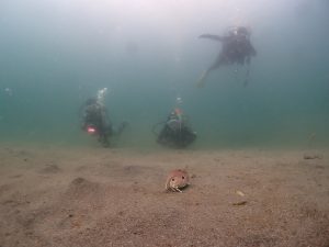 産卵期を終えたカエルアンコウは定着はせず、ビーチを徘徊中。。。